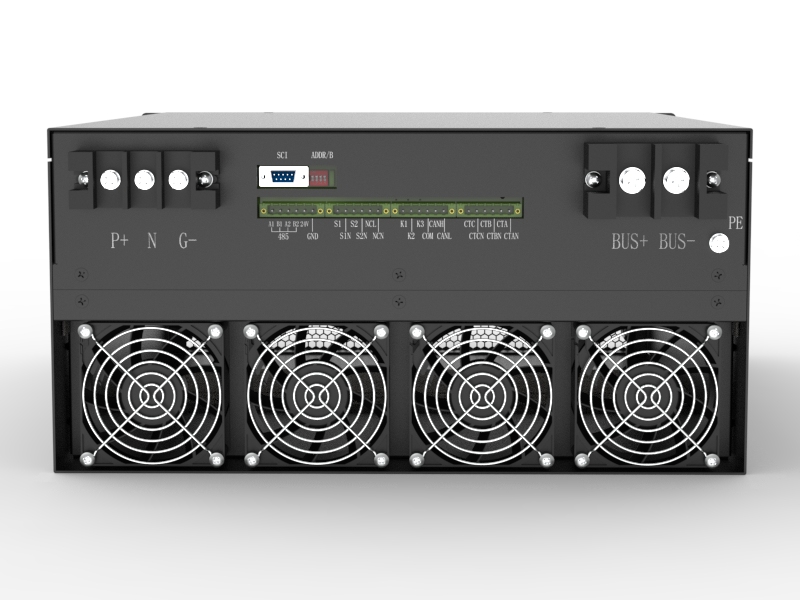 储能双向DC/DC变换器,基于三电平拓扑结构,可实现从直流到直流的双向转换。具有双向宽电压范围、双向电压电流有源控制、功率密度高、自然散热等优点。双向直流变换器是实现直流电能双向流动的装置,主要应用于光伏、混合动力汽车、直流不间断供电系统、新能源、汽车电机、电控测试、动力电池组充放电测试、电力电子测试等领域。